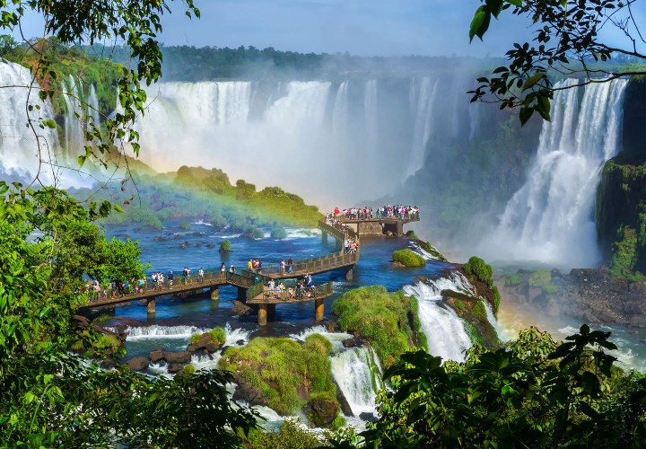 Comienza tu aventura en Río de Janeiro, donde disfrutarás de un completo city tour visitando el Cristo Redentor, el Sambódromo, la Catedral, el Maracanã, la Escalera del Selarón y el Pan de Azúcar, con vistas panorámicas de la ciudad y sus famosas playas, además de contar con tiempo libre para explorar a tu ritmo o realizar excursiones opcionales como Petrópolis, el Jardín Botánico o un paseo educativo por la Favela. Luego viajarás a Foz do Iguaçu, donde recorrerás las majestuosas Cataratas del Iguazú tanto del lado argentino como brasileño, admirando la imponente Garganta del Diablo, los senderos panorámicos y disfrutando de experiencias opcionales como el Macuco Safari o el Parque de las Aves, culminando este recorrido con traslado al aeropuerto para tu vuelo de regreso, en un viaje que combina cultura, naturaleza y vistas inolvidables.