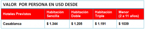- Propinas para guías y choferes (USD 40.00 por adulto y USD 10.00 por niño)