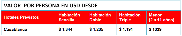 - Traslado Aeropuerto – Hotel – Aeropuerto.